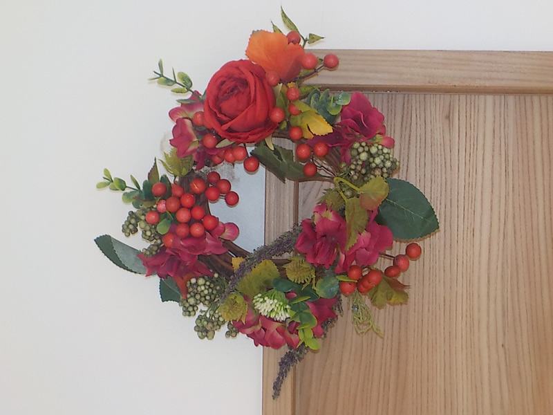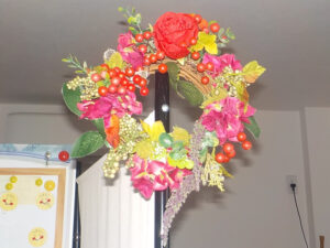 赤と緑なのでクリスマスカラー?・・・とは思うかもしれませんが、通年OKなリースです。